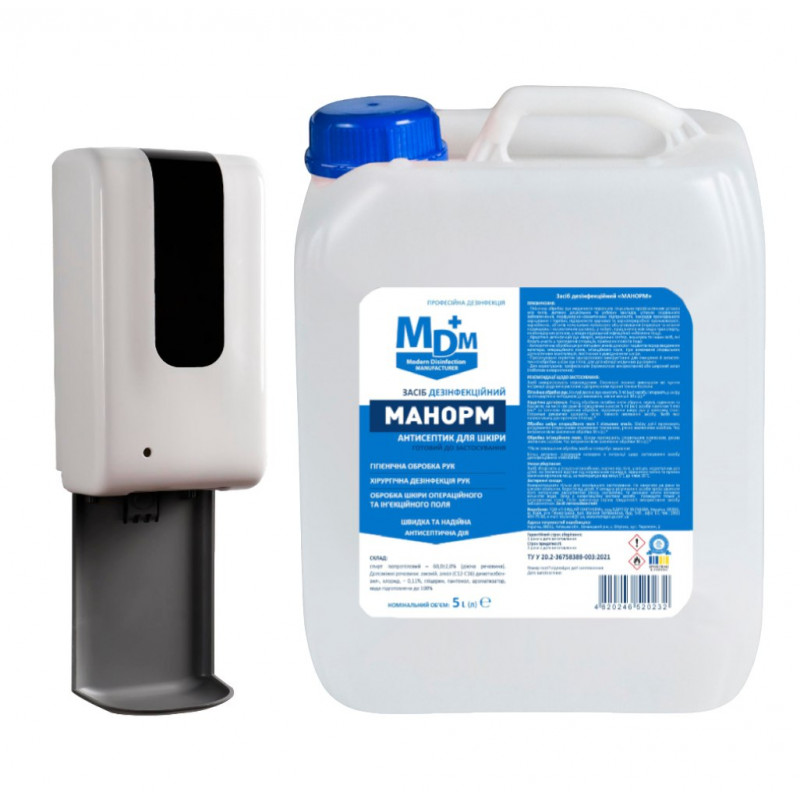Акція: Антисептик Манорм 5 л + Безконтактний диспенсер 1,2 л