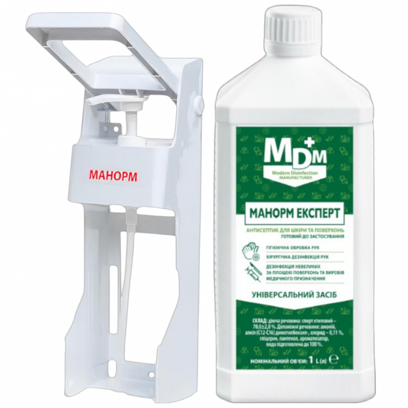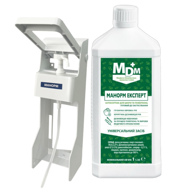 Акція: Засіб дезінфекційний для рук та поверхонь Манорм Експерт 1 л + Дозатор ліктьовий