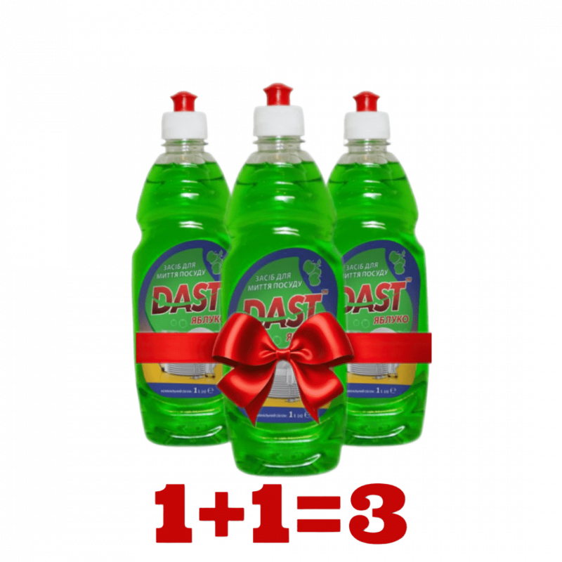 1. Гель для миття посуду DAST «Яблуко», 1 л (3 шт). Потужний концентрований засіб для ручного миття посуду.Ефективно усуває жир, залишки їжі та навіть складні забруднення.Забезпечує сяючий блиск без розводів і надає посуду приємний аромат свіжого яблука.Підходить для всіх типів посуду, зокрема з антипригарним покриттям.