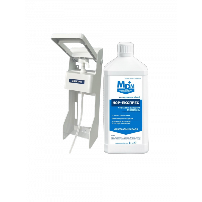 Акция: Антисептик НОР-экспресс 1 л + локтевой дозатор